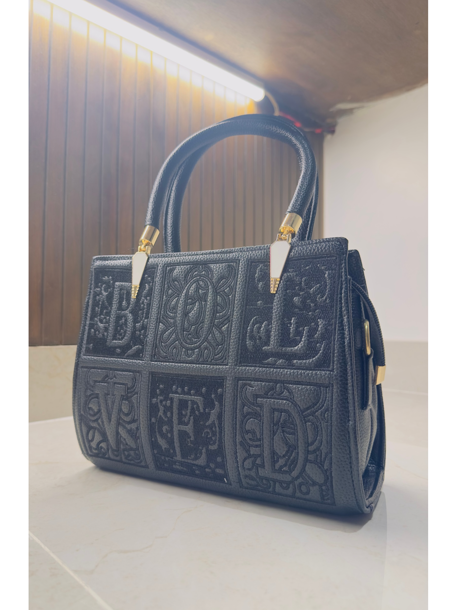 Upgrade your style with this luxury-inspired Black embossed handbag.